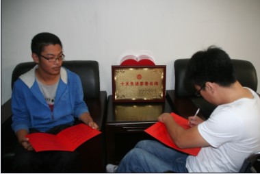 胶南市慈善总会遵照蔡池茂的捐赠意愿,主动协调赵鹏来到慈善总会,与捐资人蔡池茂、受助人赵鹏三方签订了《胶南市慈善总会“爱心胶南”助学协议书》,蔡池茂先生将连续捐助4年,每年出资5000元,帮赵鹏完成大学本科学业。